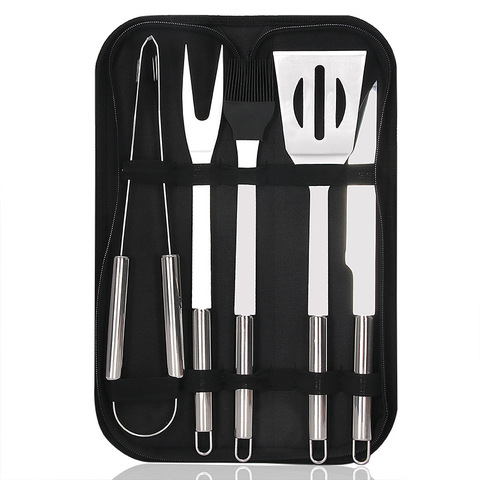 Предмет, горячая распродажа, щипцы, нож, лопатка, аксессуары для барбекю на открытом воздухе, Наборы инструментов для барбекю из нержавеющей стали, 5 шт.