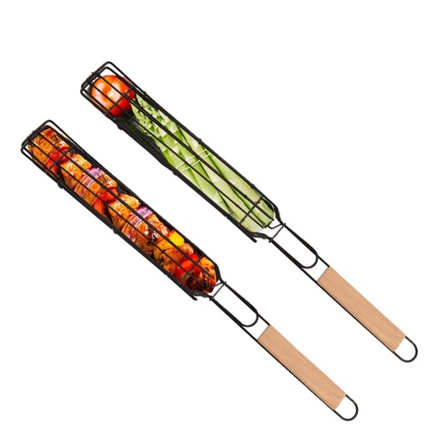 Портативная корзина для барбекю и гриля, корзина из нержавеющей стали с антипригарным покрытием для гриля, инструменты для барбекю, корзина для гриля с деревянной ручкой