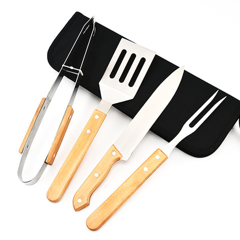 Товар Q1-204 многофункциональные барбекю аксессуары для барбекю на открытом воздухе инструменты 4 шт. барбекю гриль набор для барбекю с деревянной ручкой