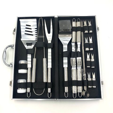 Аксессуары для барбекю высокого качества 22 шт. набор для барбекю инструменты из нержавеющей стали с алюминиевой роскошной подарочной коробкой для барбекю на открытом воздухе