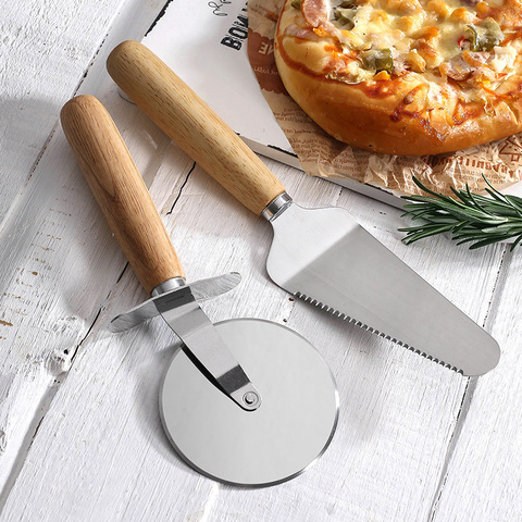Groothandel Roestvrij Stalen Wiel Pizza Cutter Kaasschaaf Met Houten Handvat